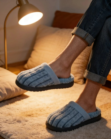 PANTUFLAS CON BASE GOMA ANTIDESLIZANTE HOMBRES RAYADA GRIS