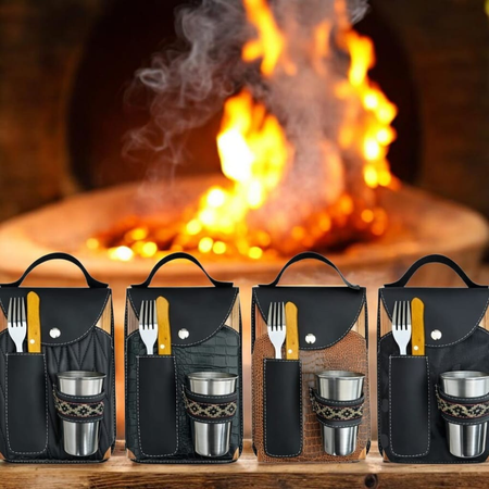 SET ASADO CON TABLA + CUBIERTOS + VASO