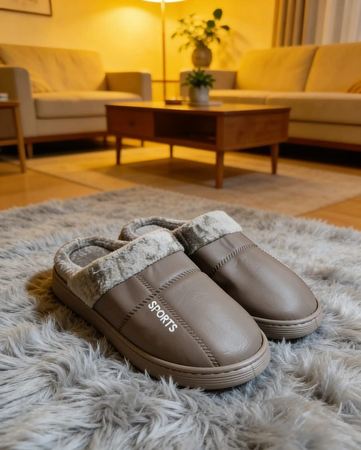PANTUFLAS MARRON CON BASE GOMA ANTIDESLIZANTE HOMBRES CUERINA AFELPADAS