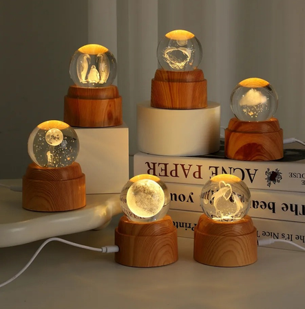 ESFERA PLANA CRISTAL 6M CON BASE MADERA