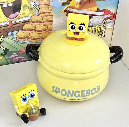BOWL OLLA CERAMICA GRANDE CON TAPA BOB ESPONJA