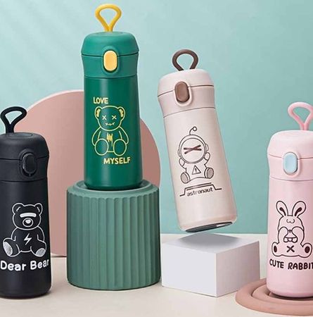 BOTELLA TERMO ACERO BABY ANIMADO CON SORBETE 520CC