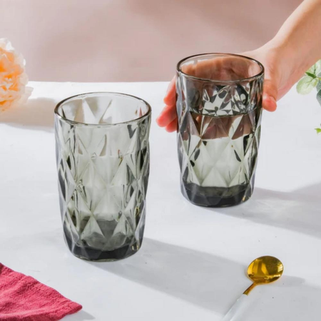 COPA DE VIDRIO RAYADA NEGRA X6