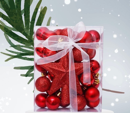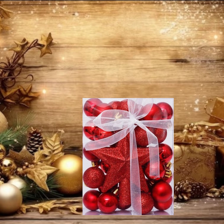 SET X 30 ADORNO ESFERAS GLITTER 3CM C/U + ESTRELLA PREMIUM