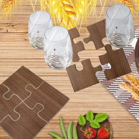 SET X 4 POSAVASOS + 1 POSA FUENTE MADERA