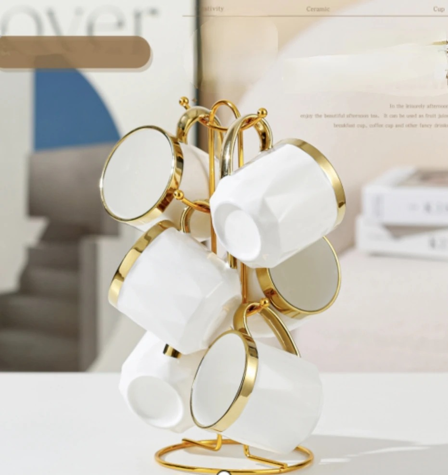 TAZAS CERAMICA BLANCA X 6 CON PORTA TAZA PREMIUM