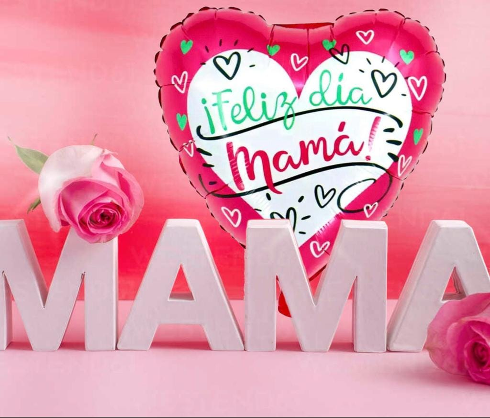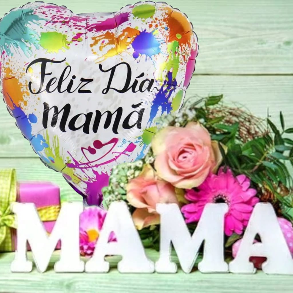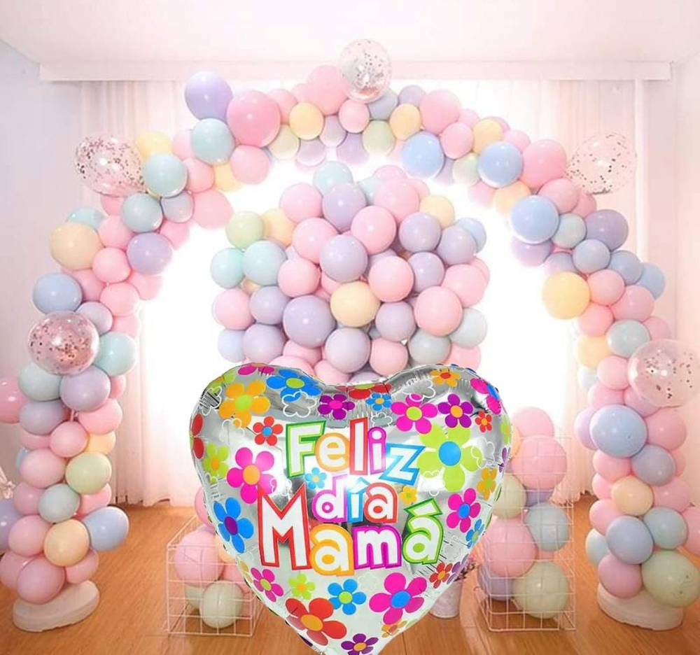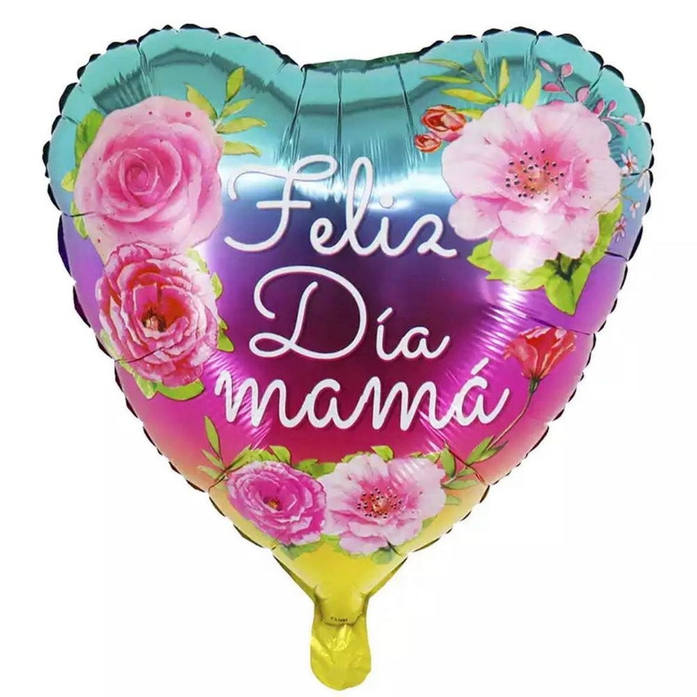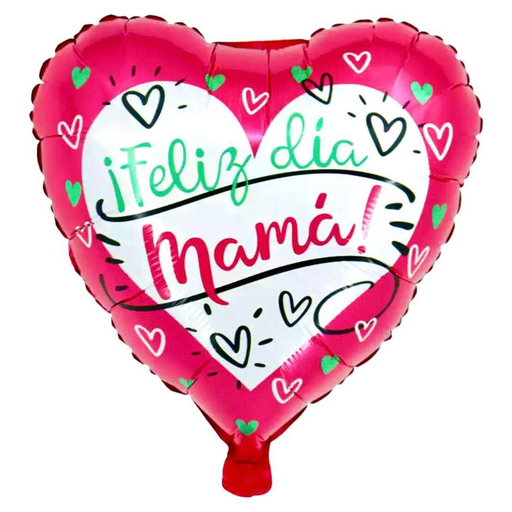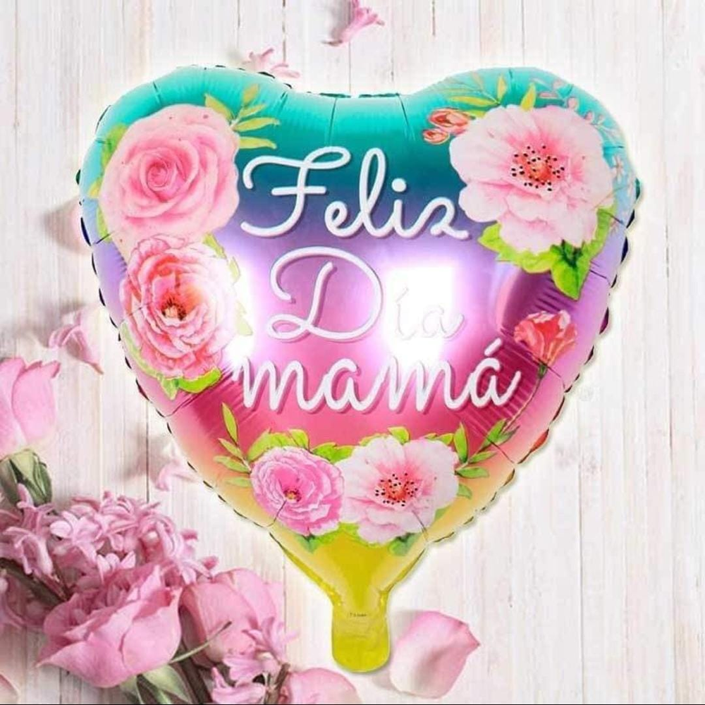 GLOBO METALIZADO EN FORMA DE CORAZON CON FRASES DEL DIA DE LA MADRE