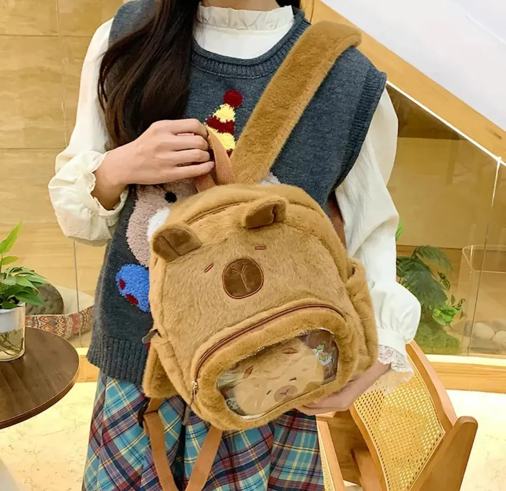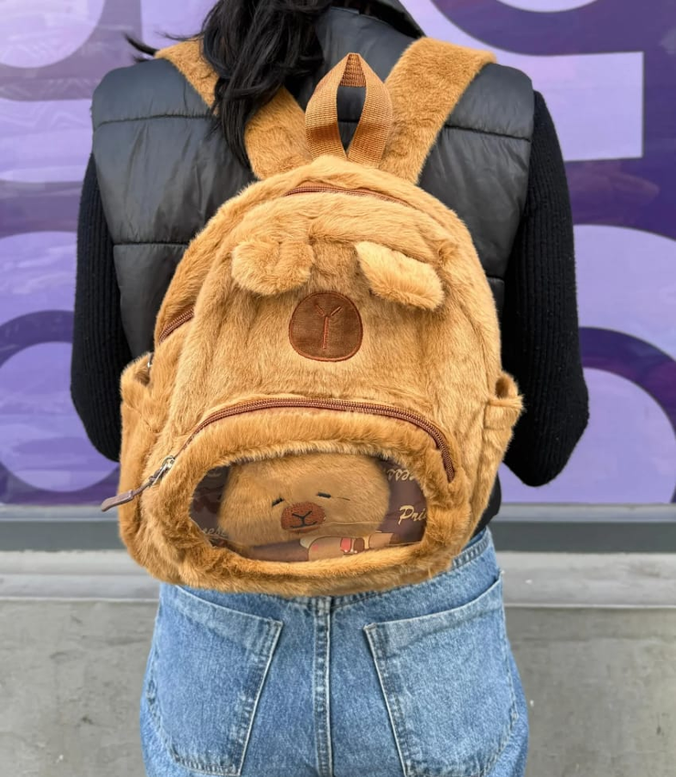 MOCHILA CAPYBARA CON PELUCHE BEBE