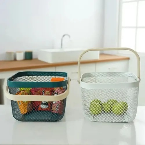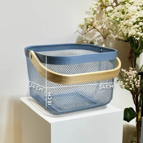 Canasto de metal con asa de madera. Es Multiuso! Ideal para organizar tu casa! Podés almacenar tus frutas y verduras, organizar tu baño o decorar tus espacios. MEDIDAS: 24 X 24 X 18 -
