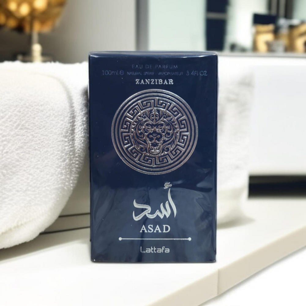 Asad Zanzibar de Lattafa Perfumes es una fragancia de la familia olfativa masculina. Esta fragancia es nueva. Asad Zanzibar se lanzó en 2024. Su aroma es el de Fanny Bal. Las notas de salida son pimienta negra y lavanda; las notas de corazón son agua de coco, iris y sal; y las notas de fondo son vainilla e incienso.