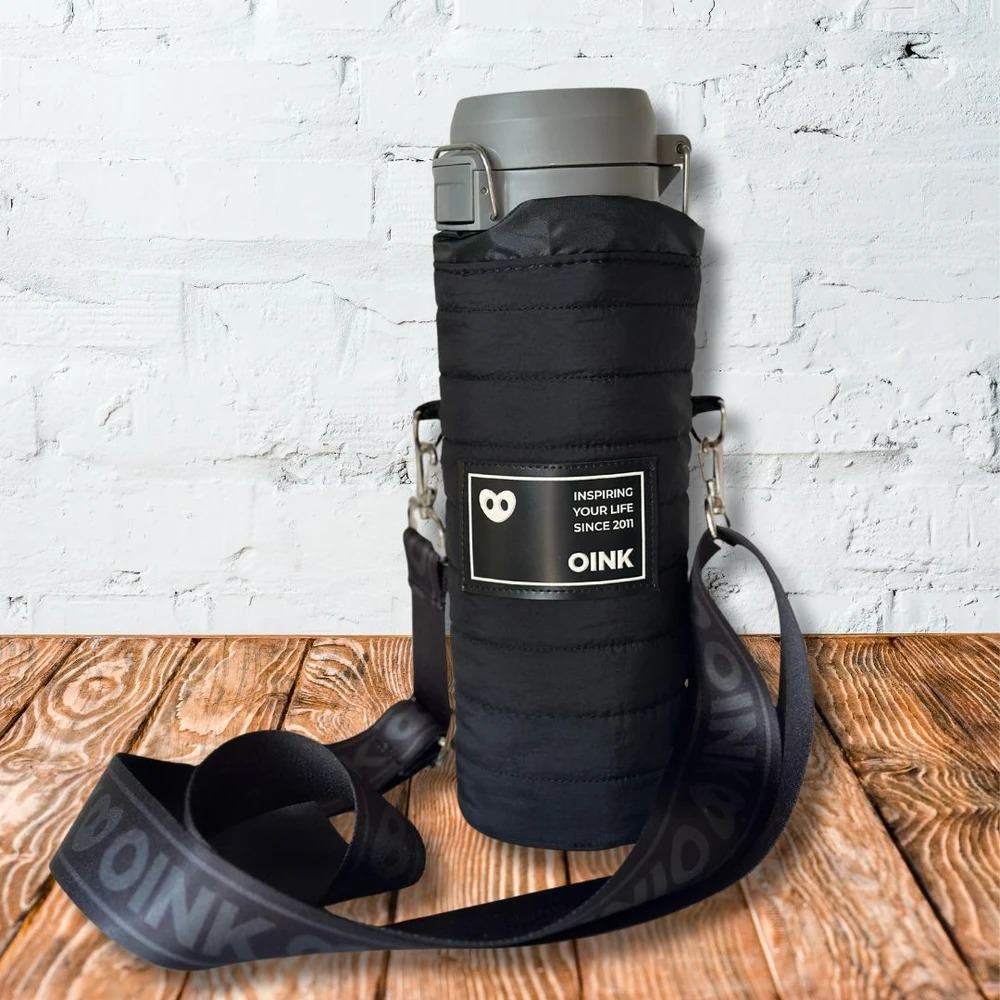 Porta Botella o Termo ideal para llevar a todos lados con vos! Con correa desmontable para que también uses la funda dentro de tu cartera o bolso y mantengas tu botella o termo aislado y tus elementos protegidos del frio calor y el agua. Mosquetones y luna de niquel Cerramiento con cordon y clip ajustable Etiqueta de goma Sirve para botellas y temos de hasta 1L