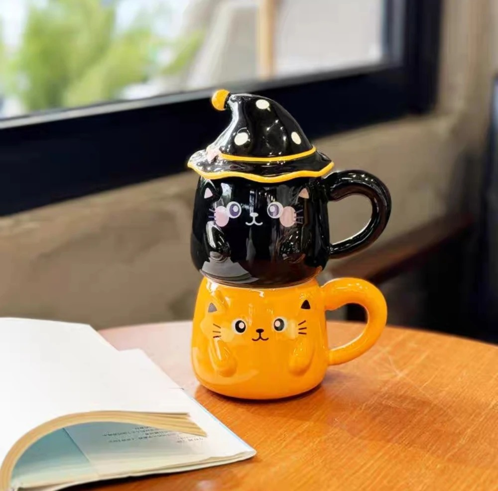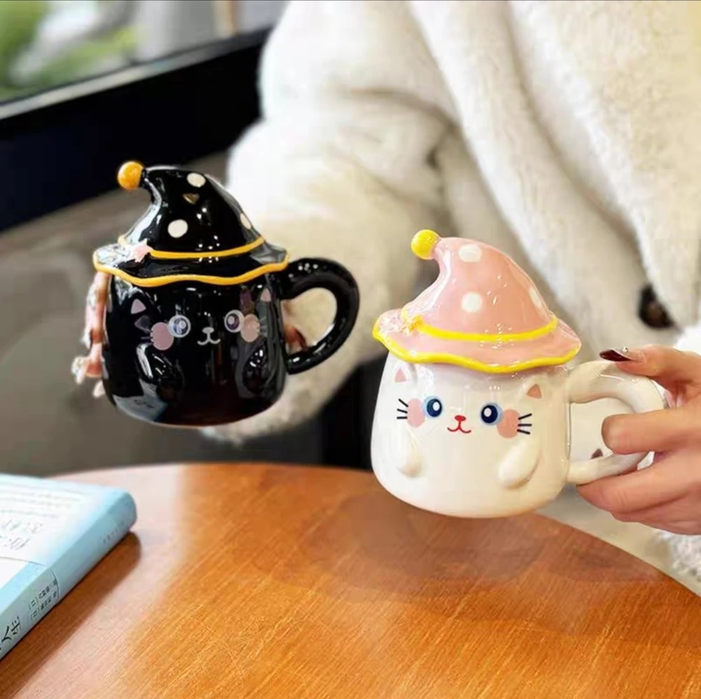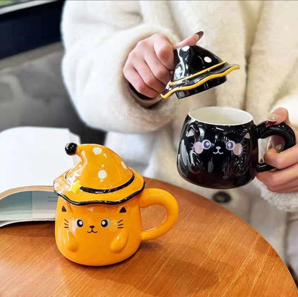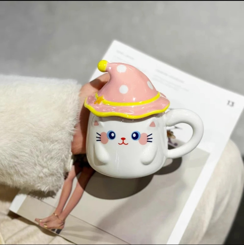 TAZA CERAMICA GATO CON TAPA SOMBRERO