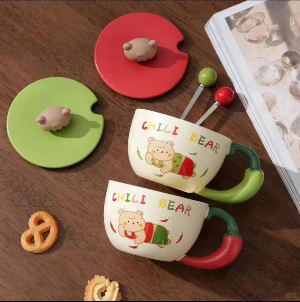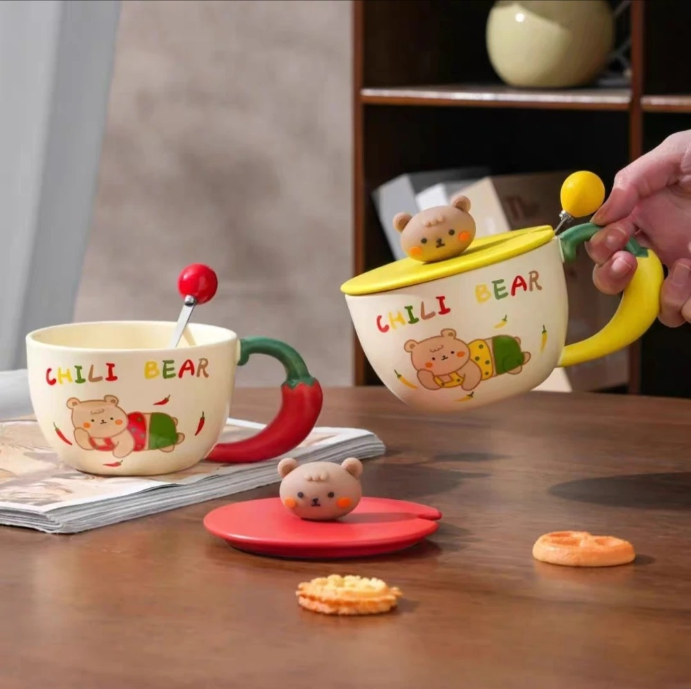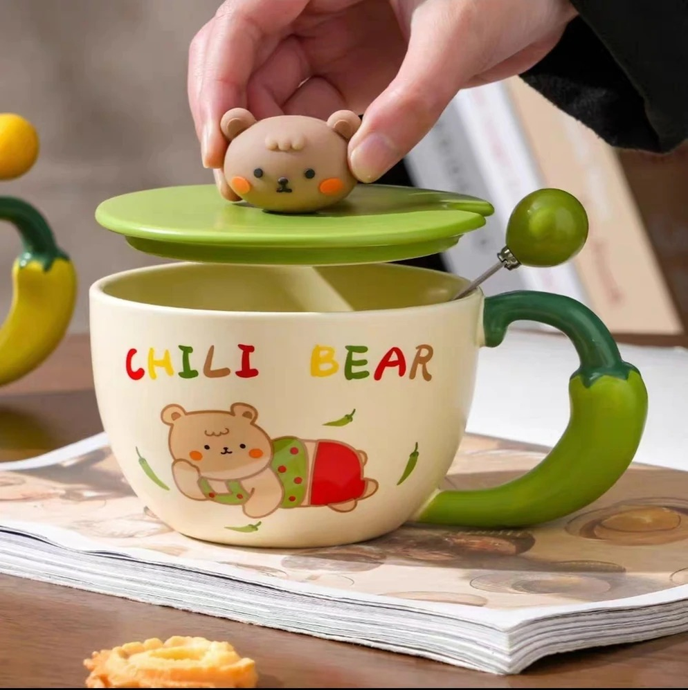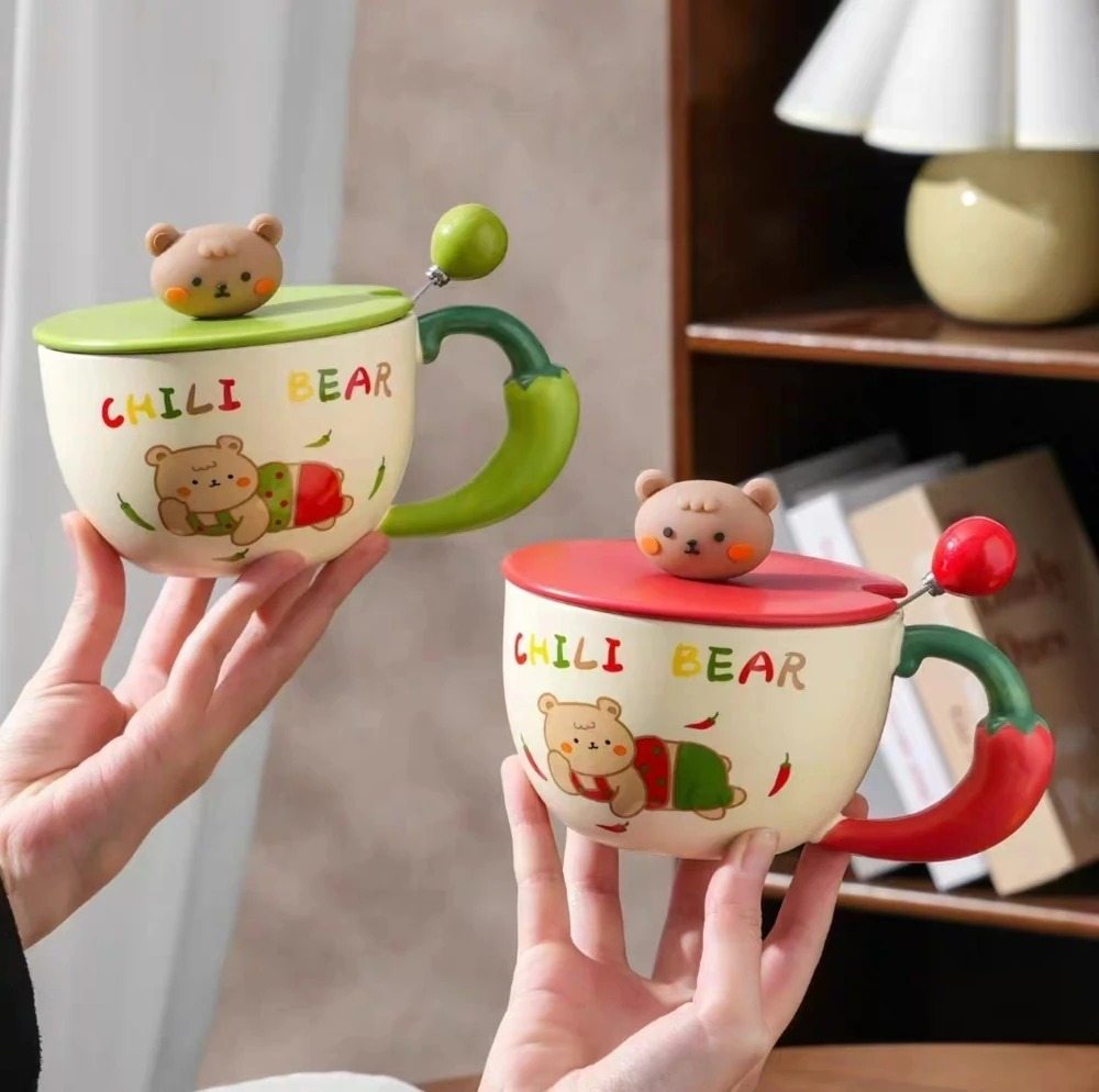 TAZA CERAMICA OSO Y CHILI + TAPA+ CUCHARITA