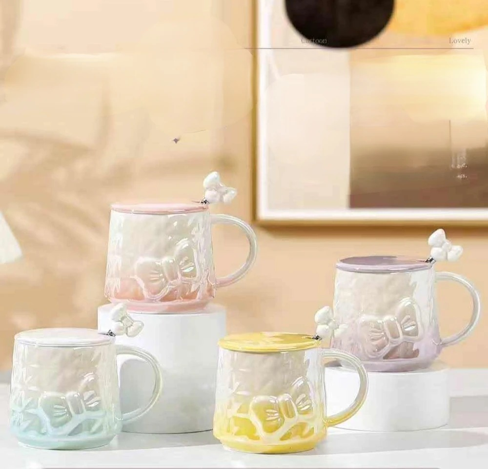 TAZA CERAMICA CON MOÑO +TAPA + CUCHARA