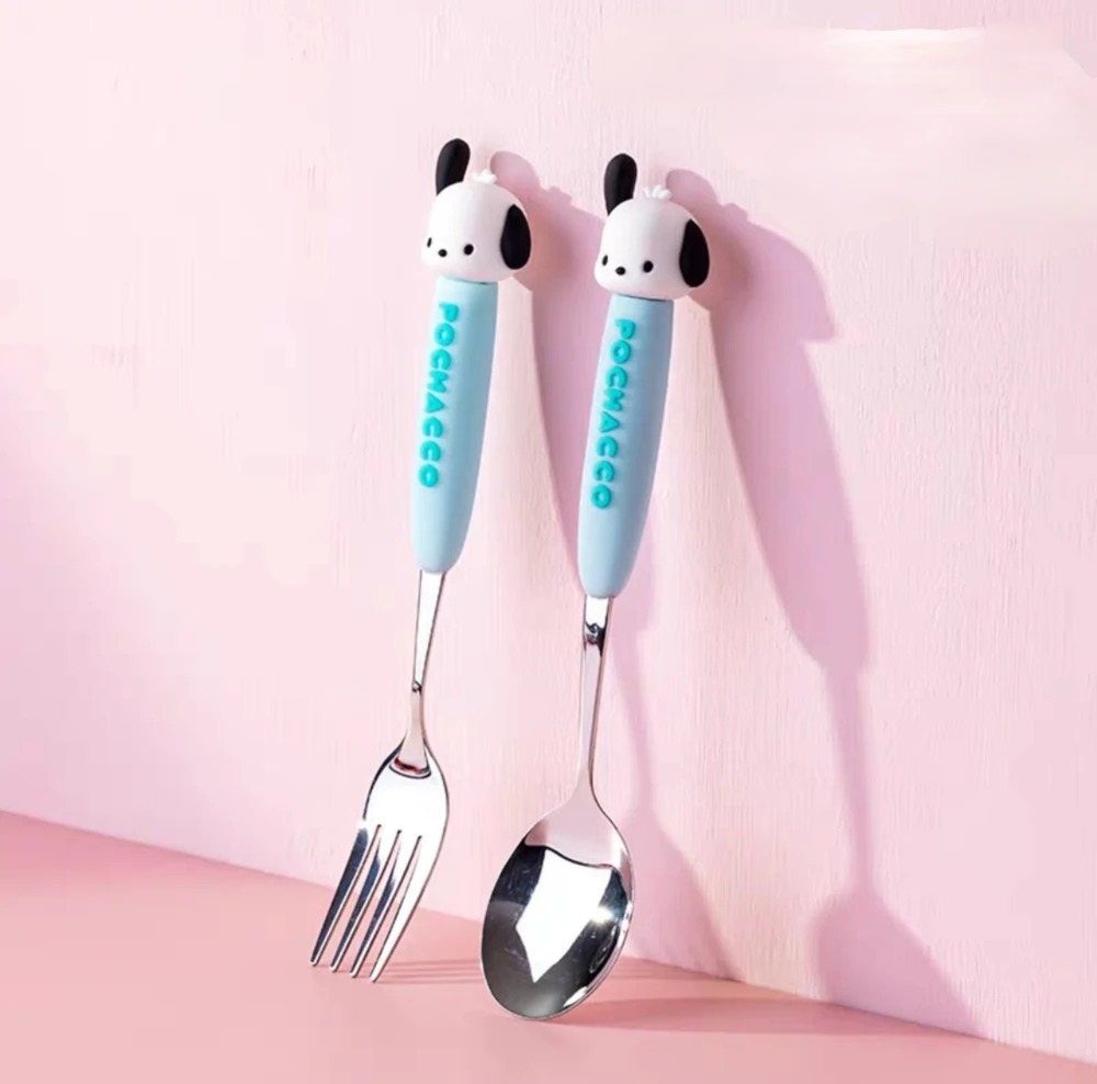 SET DE CUBIERTO PERRITO CON OREJAS NEGRAS KAWAII