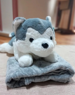 PELUCHE PERRO HUSKY RECOSTADO CON MANTA