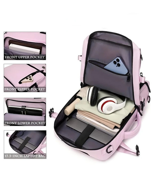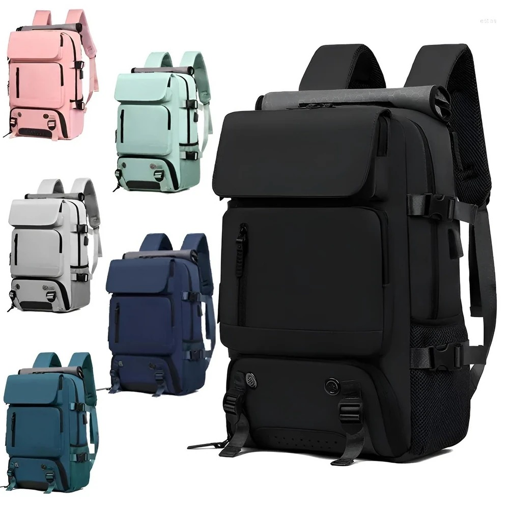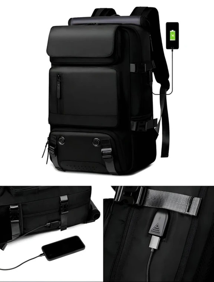 (Mochila antirrobo impermeable de alta dencidad. Cuenta con multiples compartimientos de gran capacidad. Puede guardar computadoras de hasta 16 pulgadas. Posee un puerto de carga USB. Respaldo y correa acolchado tipo transpirable. Súper versatil ideal para uso universitaria, viaje internacionales, para acampar y mucho más).