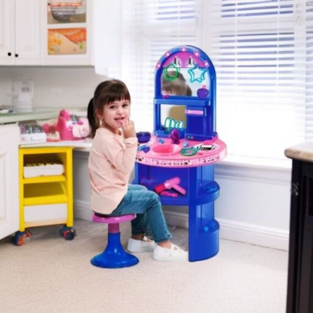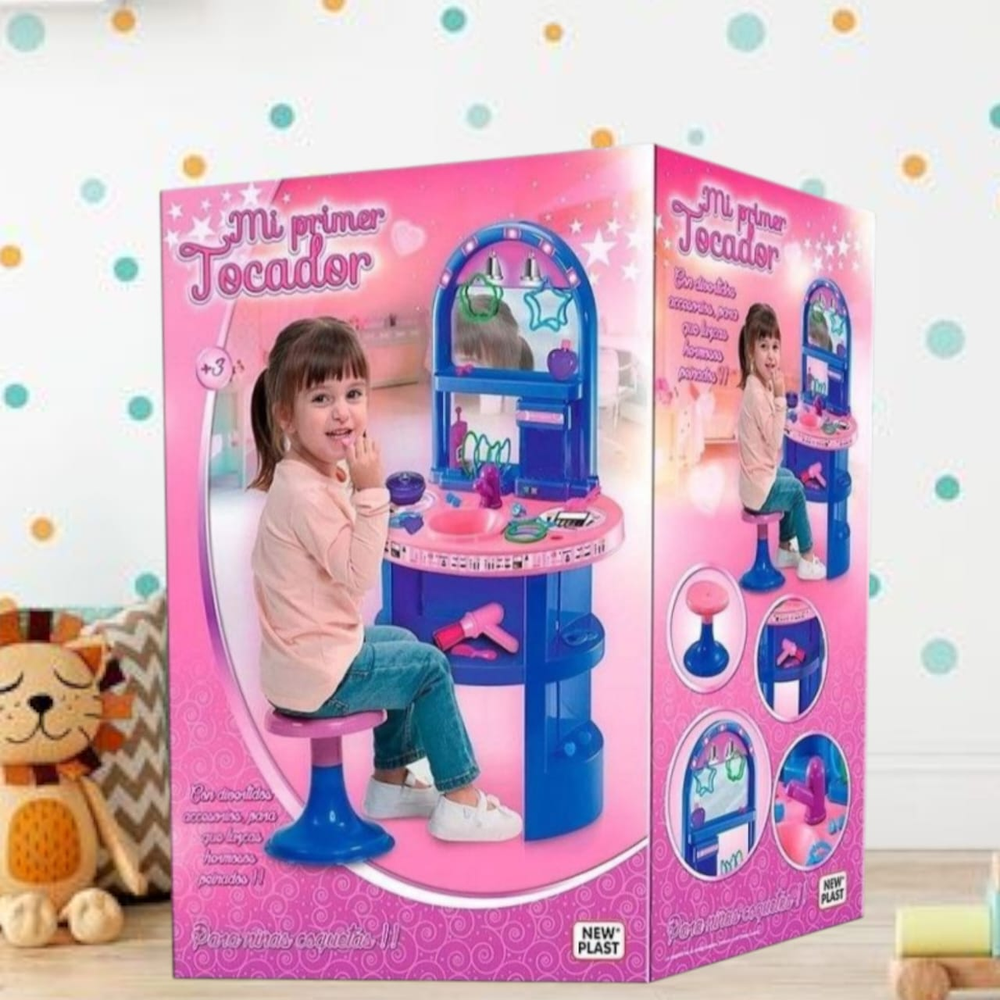 Mi Primer Tocador New Plast es un juguete infantil ideal para niños de 3 a 7 años. Este set de belleza incluye un tocador con banquito y un espejo de fantasía. Además, viene con accesorios varios de maquillaje de plástico y stickers para decorar, lo que permite a los niños personalizar su propio espacio de belleza. El material de este producto es de plástico reforzado, lo que garantiza su durabilidad y resistencia. Las medidas del producto armado son de 88cm x 47cm x 31 cm, un tamaño perfecto para los más pequeños.