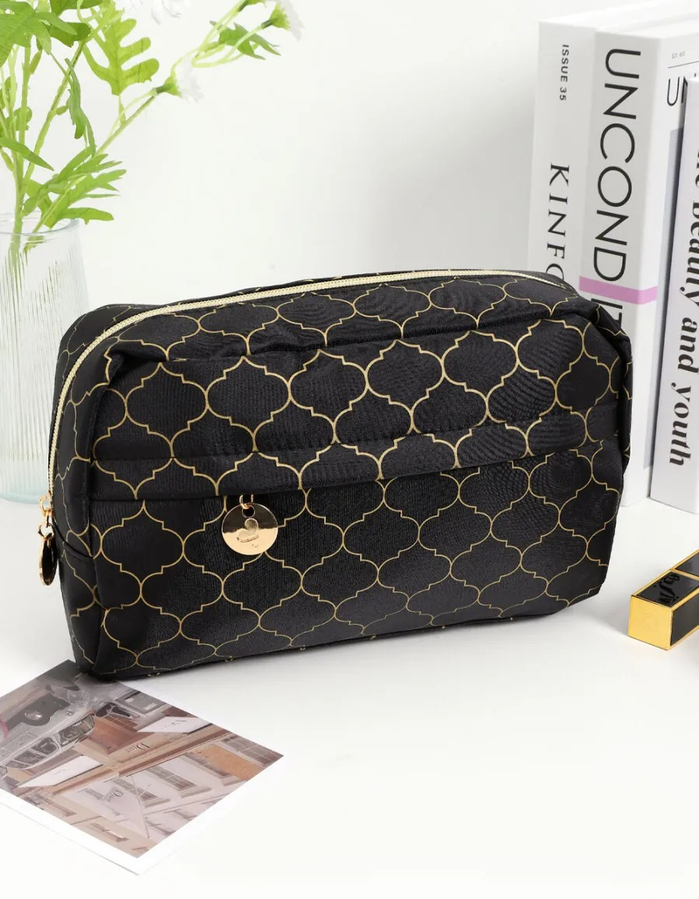Neceser de Viaje Negro con Estampado Dorado. Chic, funcional y listo para acompañarte a todos lados