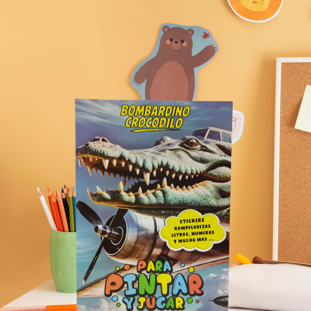 LIBRO PARA COLOREAR + STICKERS COCDRILO BOMBARDINO COCODRILO