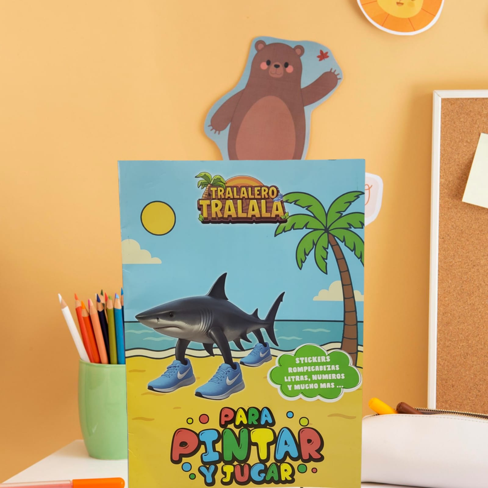 LIBRO PARA COLOREAR + STICKERS TRALALERO TRALALA TIBURON