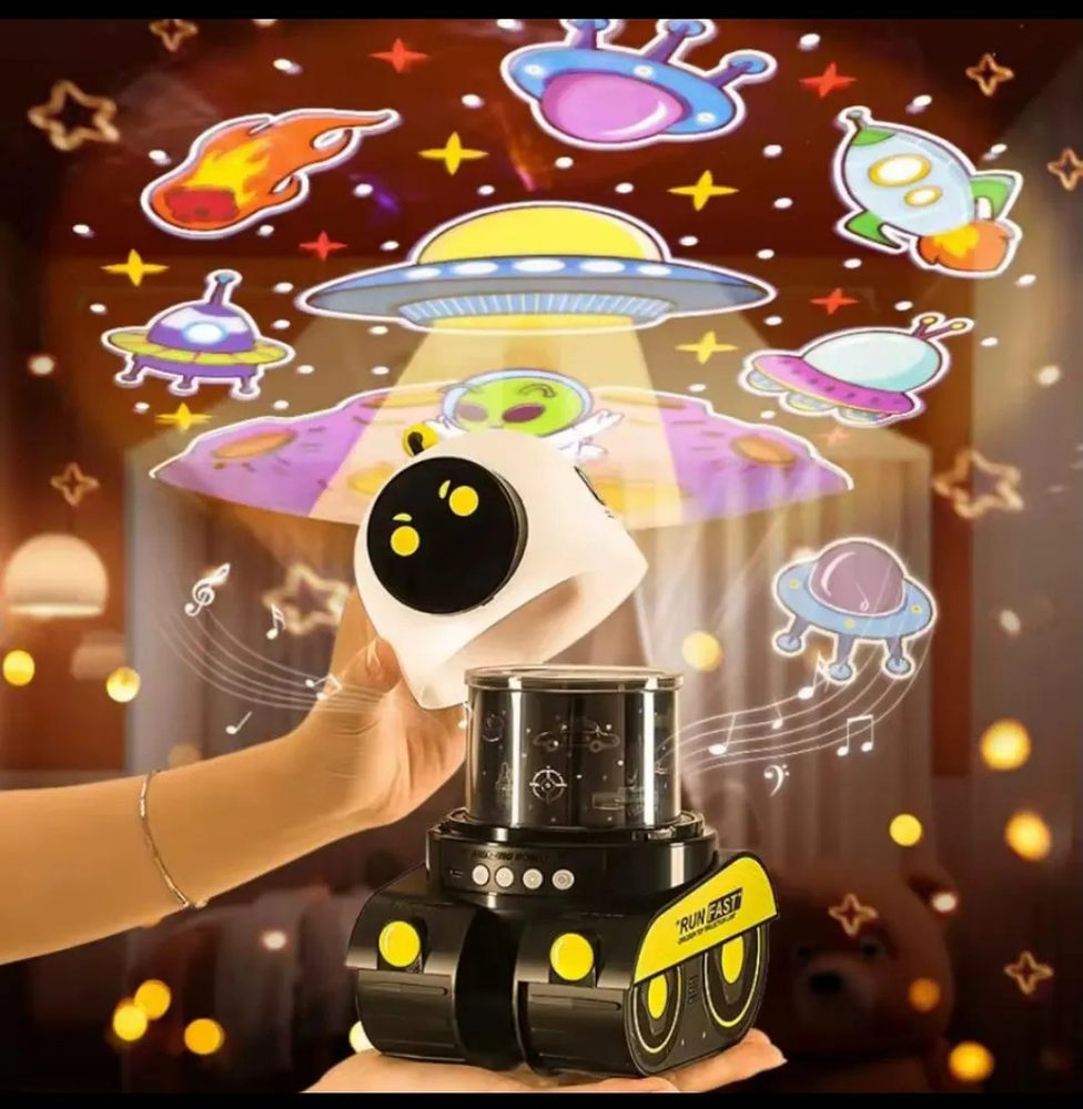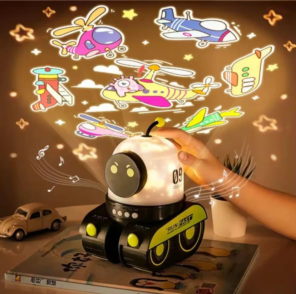 El diseño giratorio del proyector permite que las imágenes y colores se desplieguen en las paredes y el techo, llenando el cuarto de Los niños de sueños estrellados y divertidos personajes. Además, cuenta con funcionalidades de música Bluetooth que permiten reproducir las melodías favoritas de los más pequeños, haciéndolo ideal para la hora de dormir o para momentos de juego.
