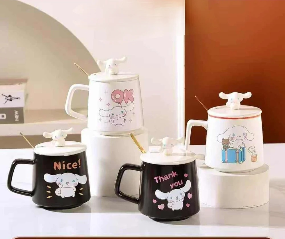 TAZA CERAMICA CINAMOROLL NEGRA + TAPA+ CUCHARITA