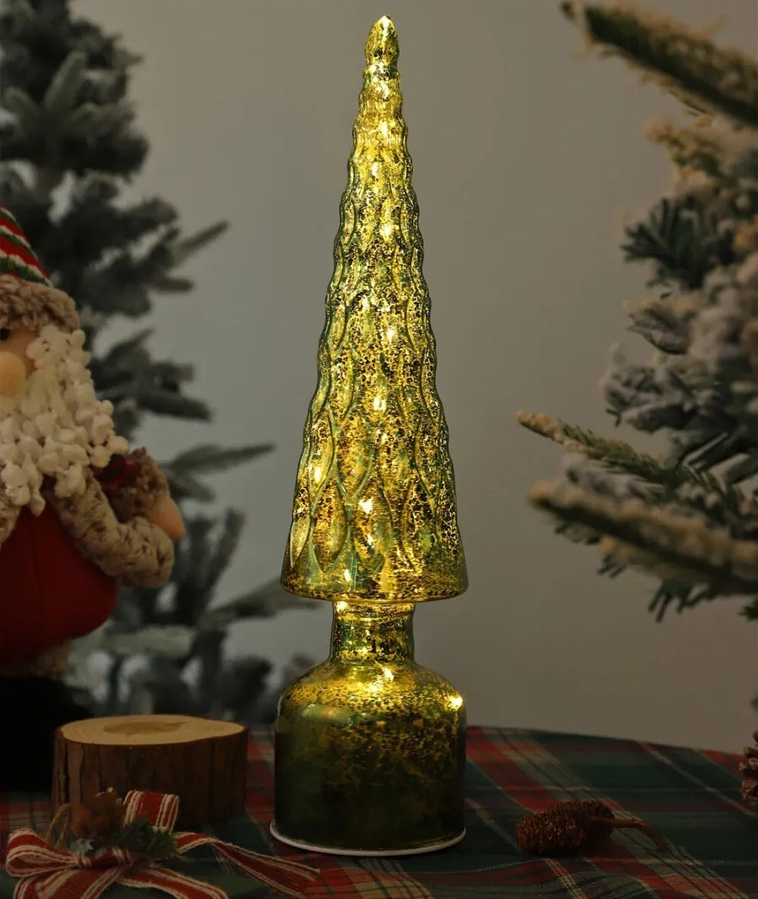 Lámpara decorativa en forma de árbol de Navidad con un diseño elegante y brillante que crea un cálido ambiente festivo. Su acabado luminoso resalta tanto de día como de noche, siendo ideal para decorar salas, mesas o escaparates. Funciona con 3 pilas AAA (no incluidas). Perfecto como adorno navideño moderno y sofisticado.
