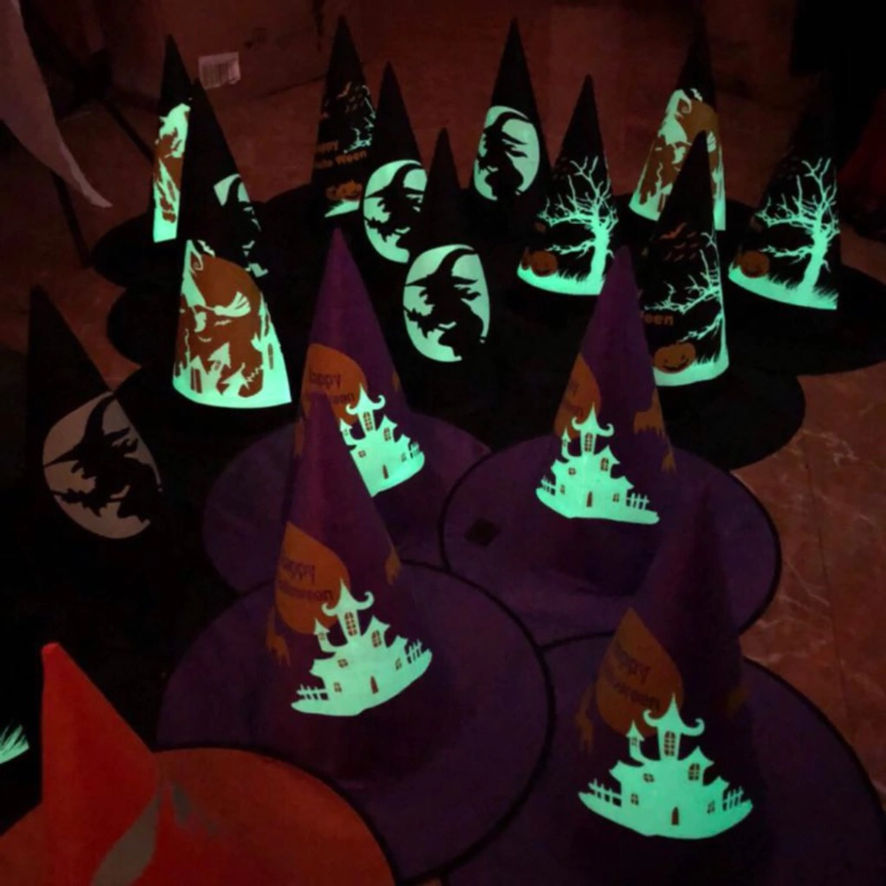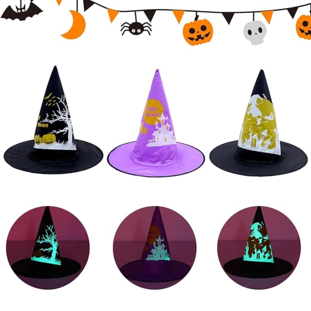 ¡Sumá magia a tu vidriera con el GORRO DE BRUJA QUE BRILLA EN LA OSCURIDAD! Perfecto para comerciantes que buscan destacar y atraer clientes en Halloween. Fácil de exhibir y reutilizable. ¡Que tu local ilumine la temporada!