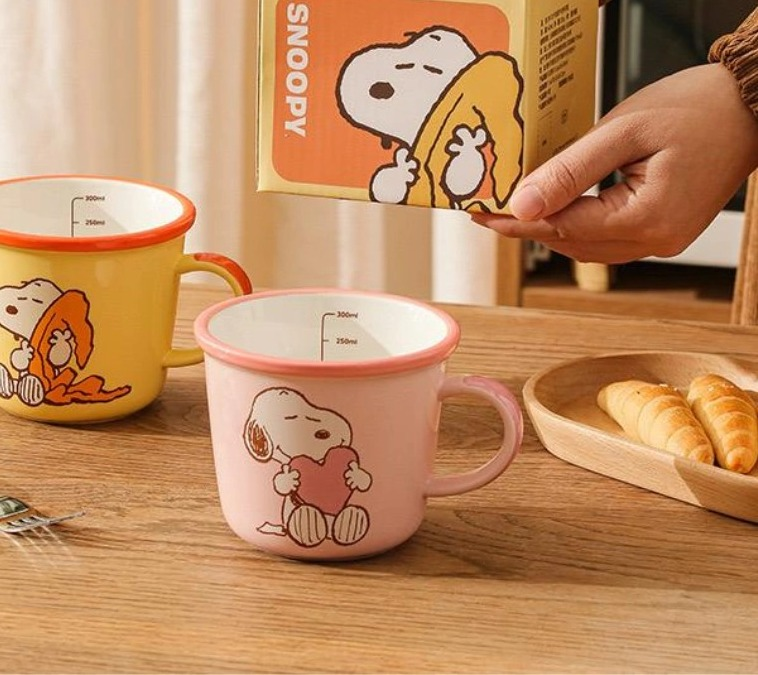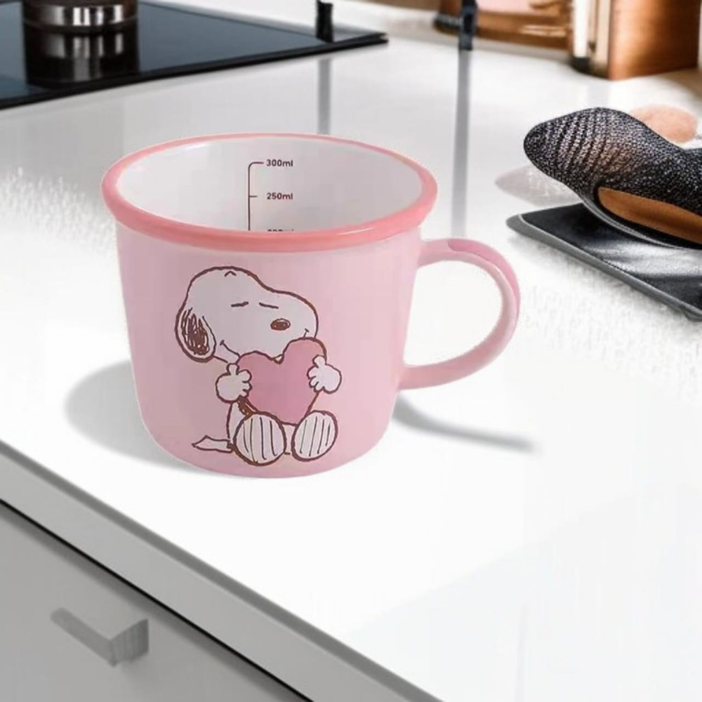 TAZA CERAMICA CON MEDIDOR SNOOPY ROSA