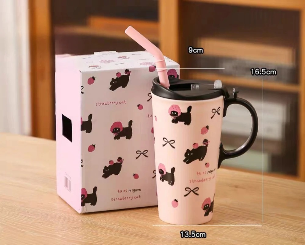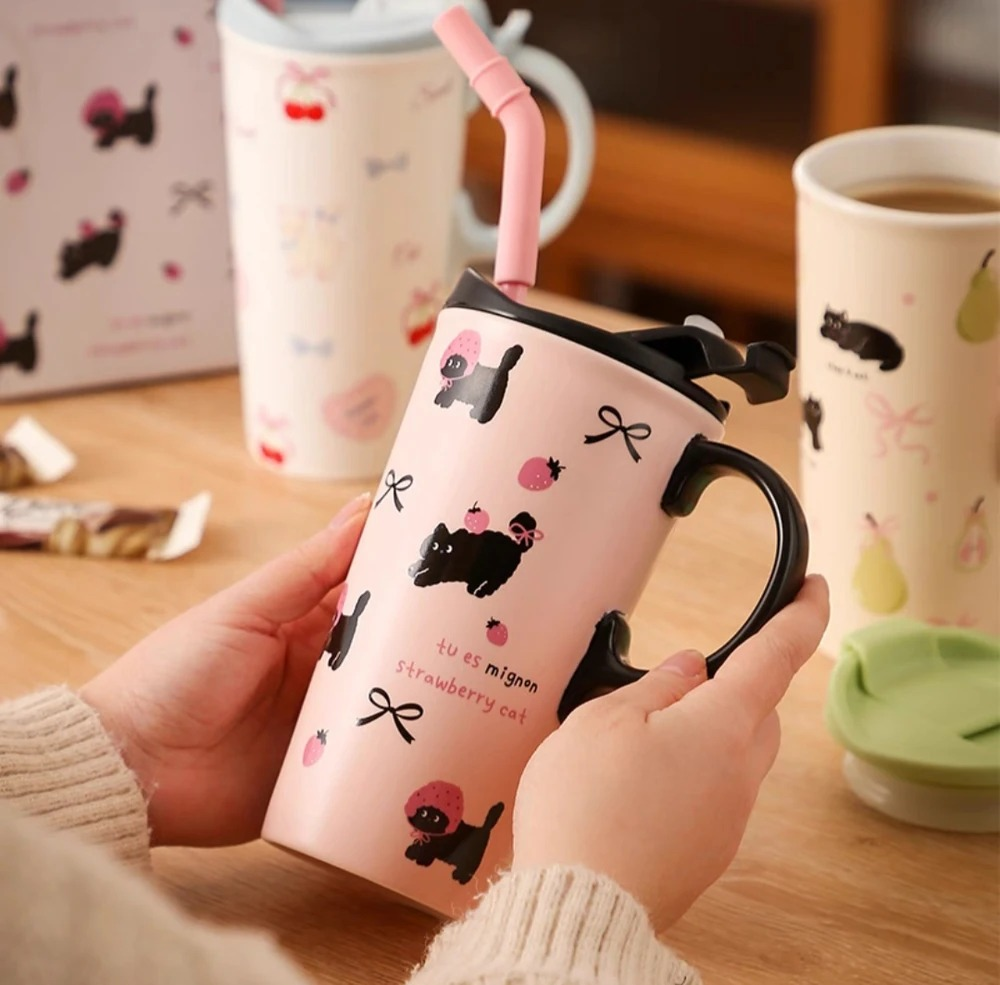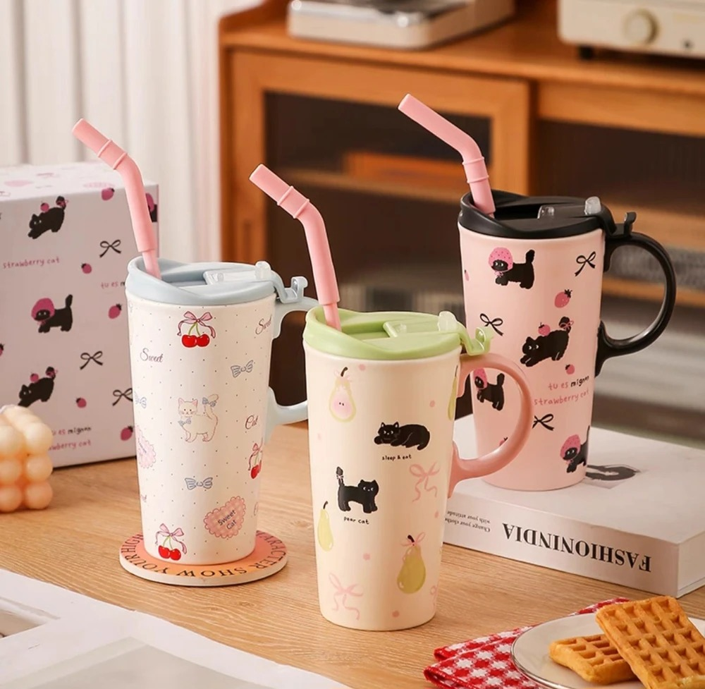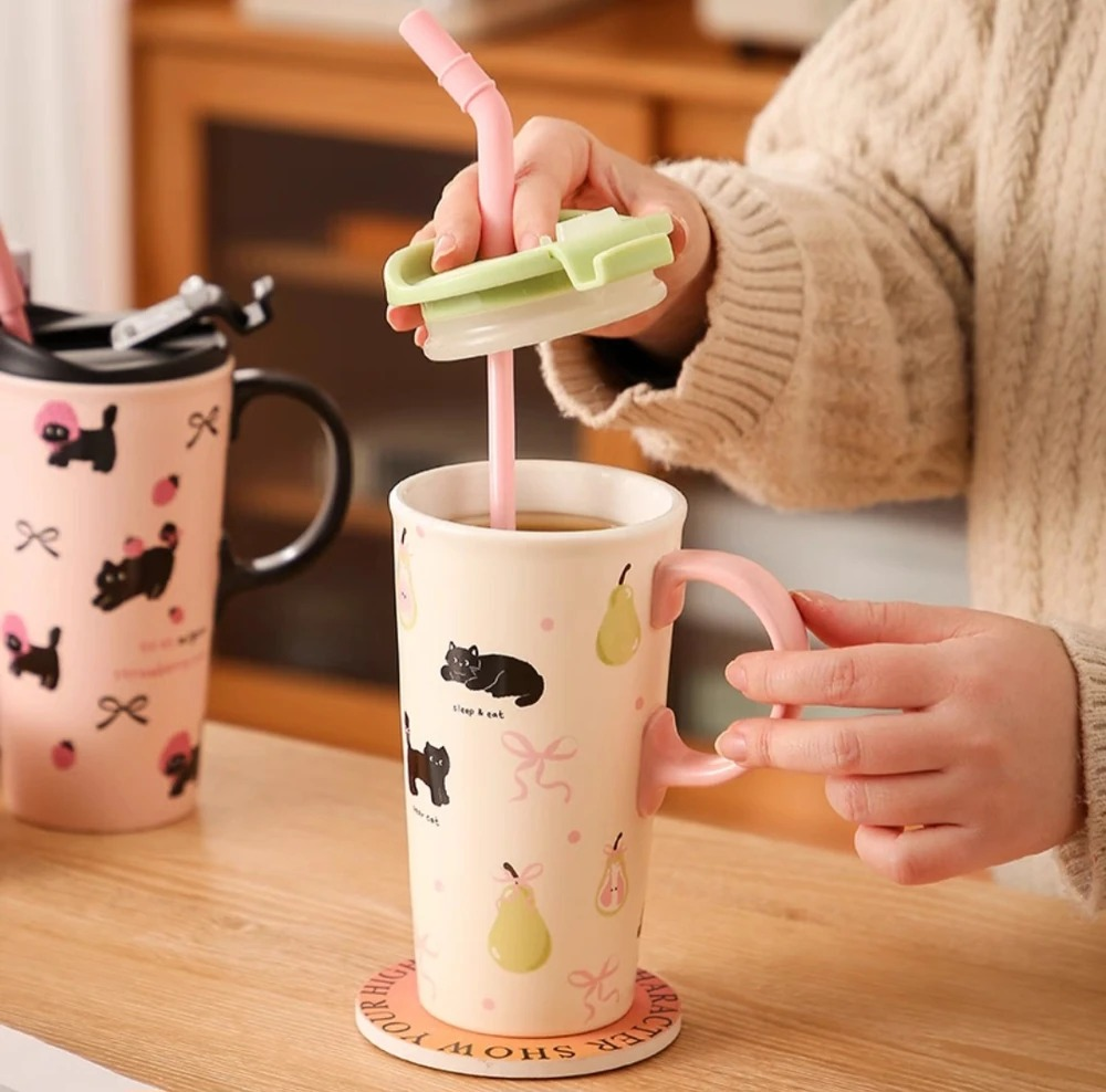 JARRO XL CERAMICA GATOS Y FRUTAS + TAPA+ SORBETE