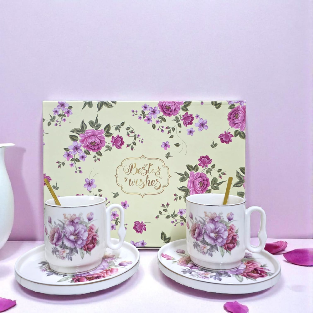 SET 6 PIEZAS TE (2 TAZAS +2 PLATOS+ 2 CUCHARITAS) FLORES