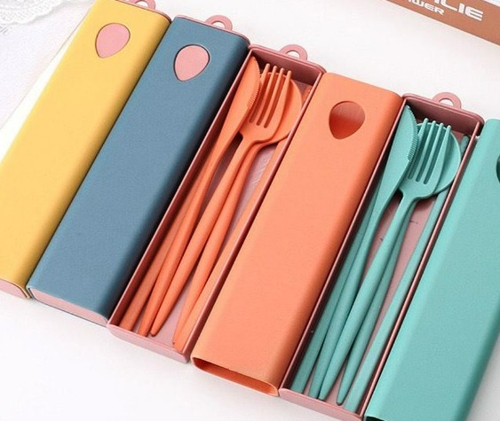 EL JUEGO DE CUBIERTOS ES COMPACTO, SE PUEDE DESMONTAR, FÁCIL DE LLEVAR, ADECUADO PARA LA ESCUELA, EL TRABAJO, LOS VIAJES, LOS PICNICS, ETC.