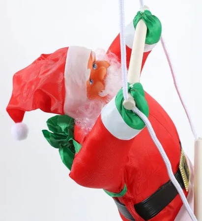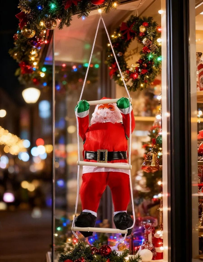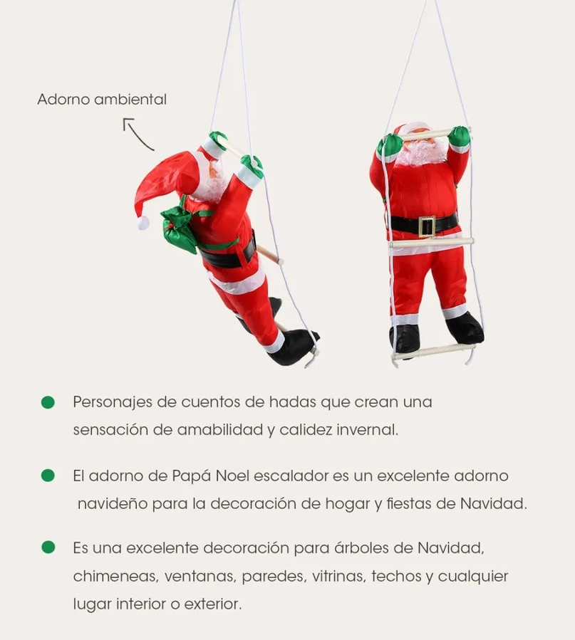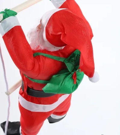 Papa noel trepador en escalera. Sorprendé a todos con este divertido papa noel trepando una escalera, perfecto para darle un toque original y festivo a tu decoración navideña. Con su clásico traje rojo, gorro navideño y detalles realistas, parece estar escalando para dejar los regalos, llenando el ambiente de alegría y fantasía. Ideal para colgar en paredes, ventanas, balcones o incluso junto al árbol de Navidad, convirtiéndose en un adorno que no pasa desapercibido.