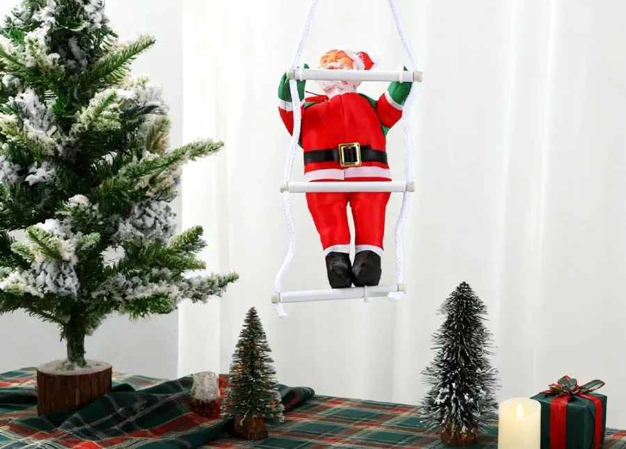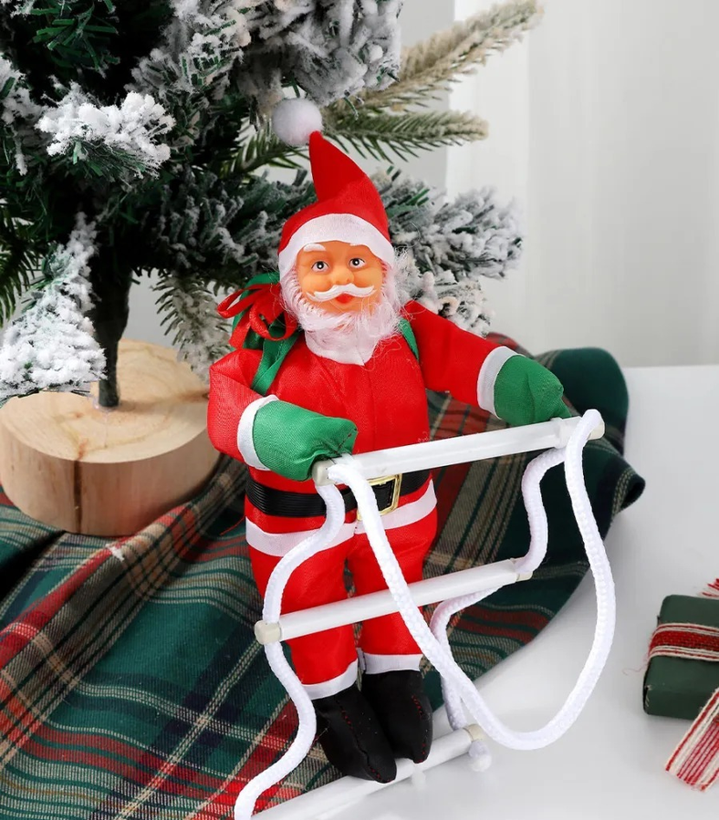 Papa noel trepador en escalera. Sorprendé a todos con este divertido papa noel trepando una escalera, perfecto para darle un toque original y festivo a tu decoración navideña. Con su clásico traje rojo, gorro navideño y detalles realistas, parece estar escalando para dejar los regalos, llenando el ambiente de alegría y fantasía. Ideal para colgar en paredes, ventanas, balcones o incluso junto al árbol de Navidad, convirtiéndose en un adorno que no pasa desapercibido.