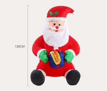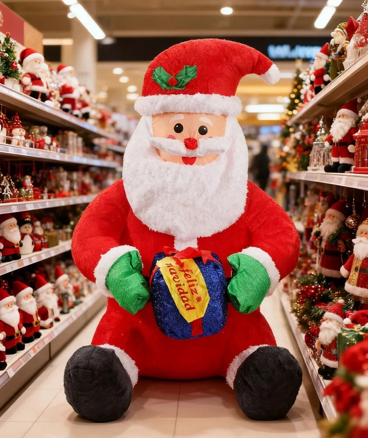 Inflable de Papá Noel. Este simpático de papa noel inflable de 1,2 metros es el complemento perfecto para darle un aire festivo a tu hogar, negocio o evento. Está fabricado en poliéster y tela de alta calidad, resistente y duradero, con diseño colorido y alegre. Viene con su clásico traje rojo, guantes verdes y un regalo en las manos con la frase "Feliz Navidad", ideal para transmitir espíritu navideño.