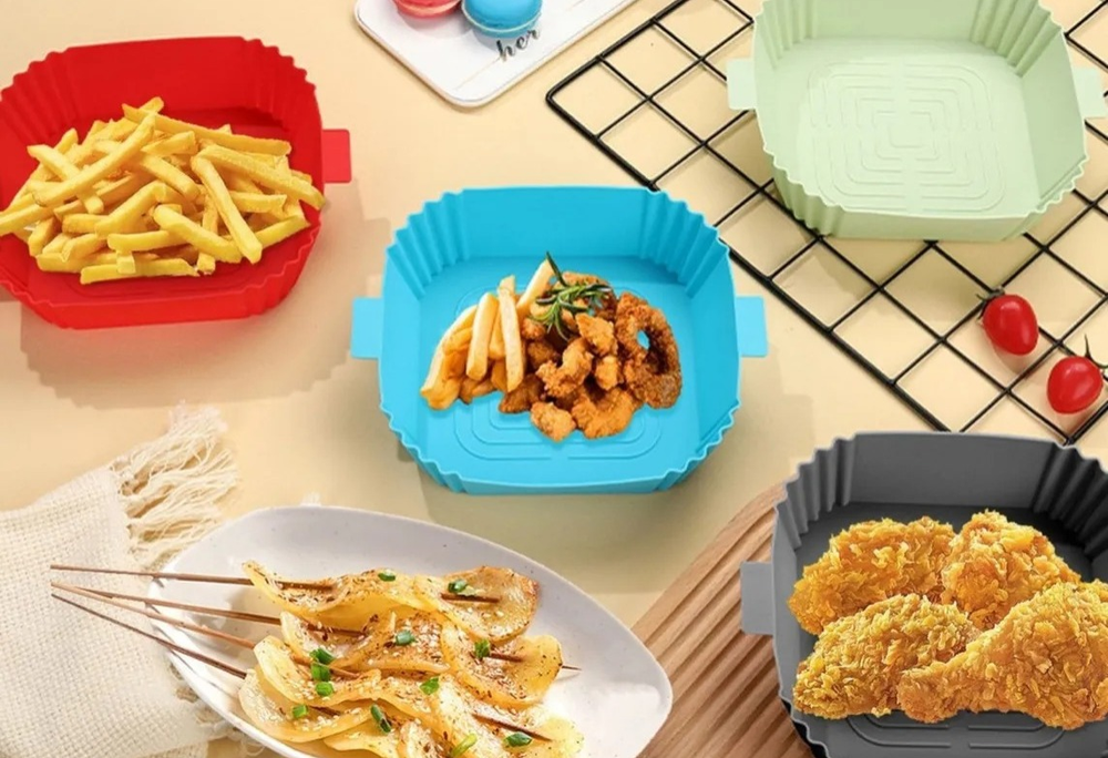 MOLDES DE SILICONA REUTILIZABLES PARA FREIDORAS DE AIRE. ESTOS ACCESORIOS ESTÁN DISEÑADOS PARA FACILITAR LA COCCIÓN Y LA LIMPIEZA AL USAR MISMA.