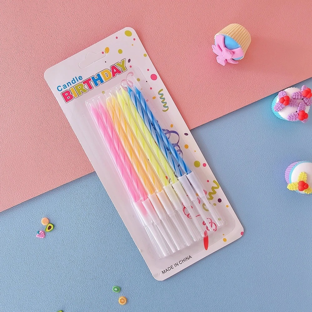 (Blister de ocho velas de distintos colores vibrantes y hermosos).