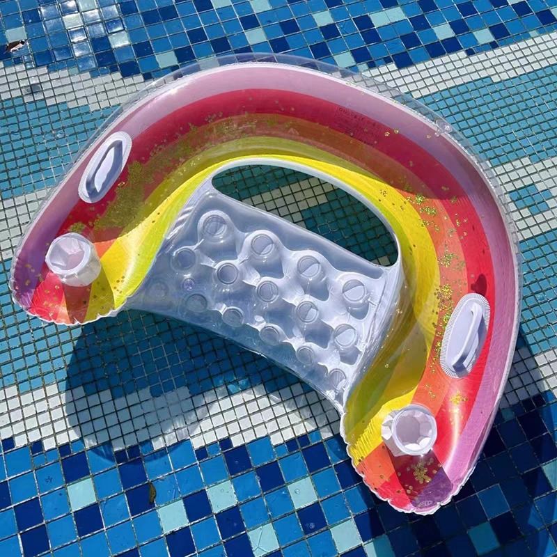 COLCHONETA ARCO IRIS CON POSAVASOS INFLABLE