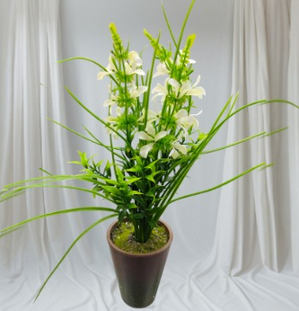 MACETA CON PLANTA Y FLORES BLANCAS 31CM