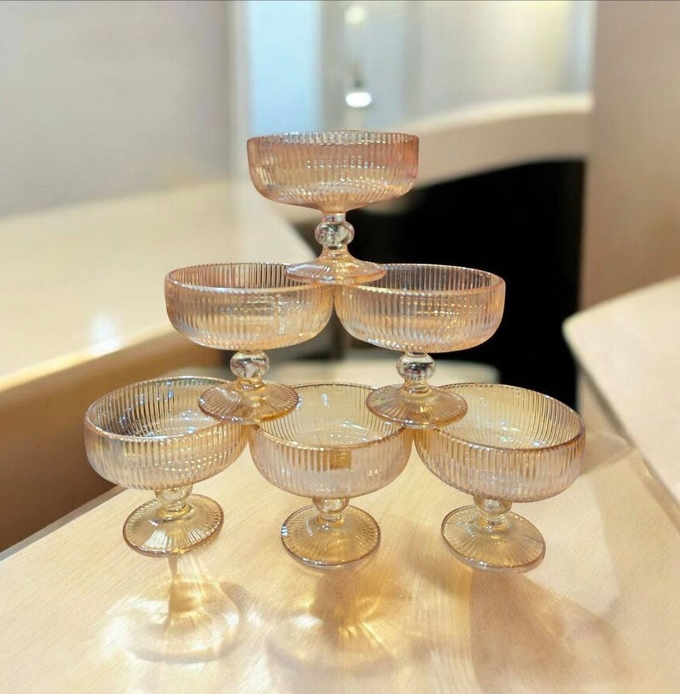 SET X 6 COPAS GOLD CARAMEL VIDRIO PARA POSTRE