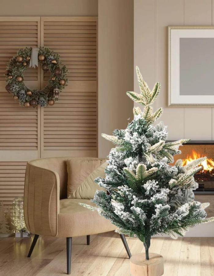 Navidad nevado artificial, ideal para decorar espacios pequeños con un toque festivo y natural. Material: mezcla de PVC y PE de alta calidad.