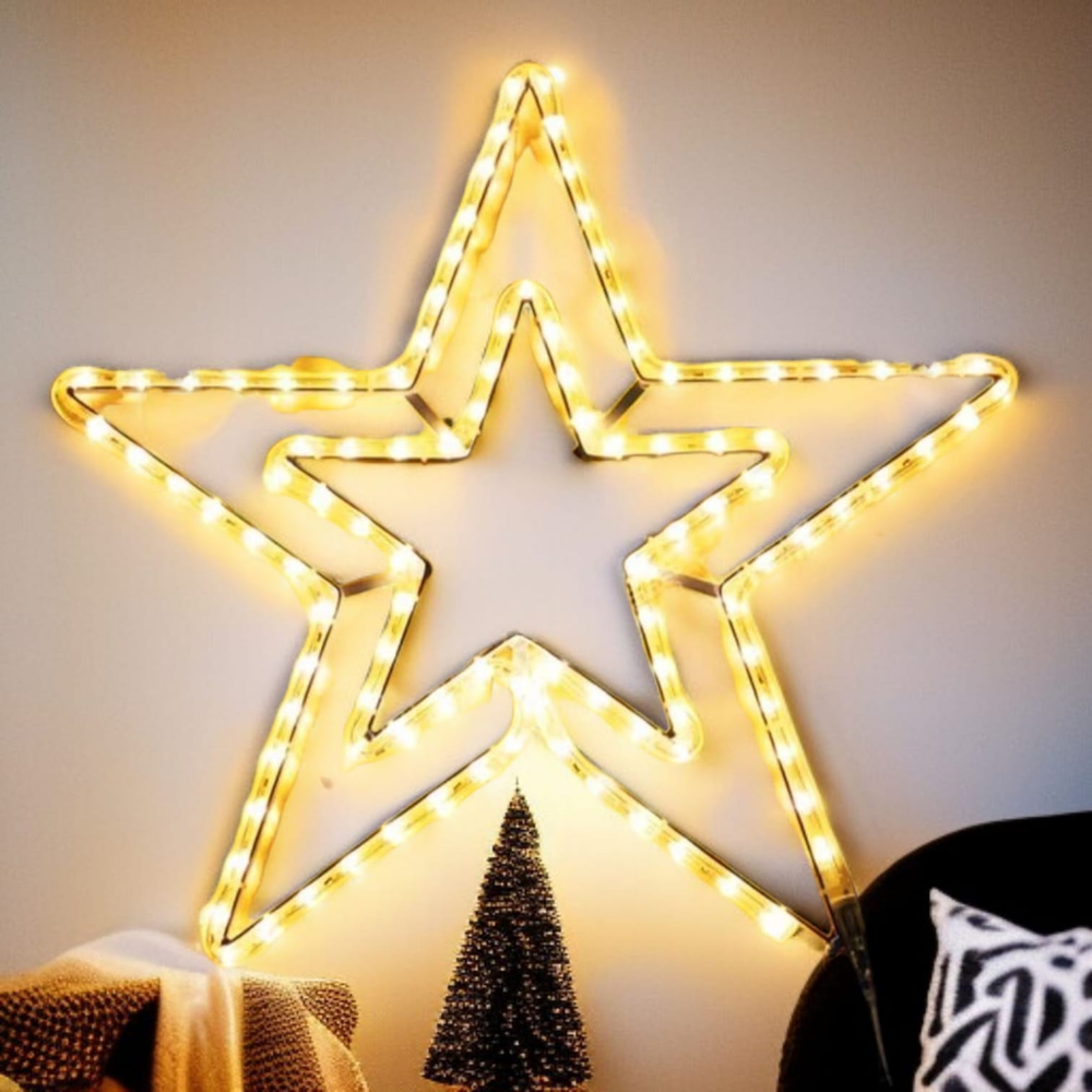ESTRELLA DOBLE CON LUZ LED CALIDA
