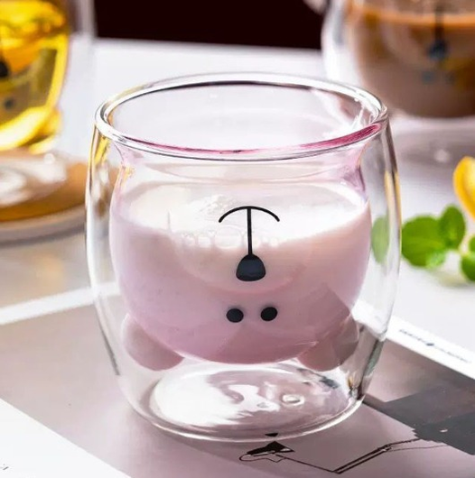 VASO VIDRIO ROSA DOBLE OSO 250 ML