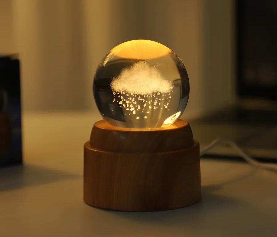 Bola de cristal 3D con luz LED Agregá un toque de elegancia y calidez a tus espacios con esta hermosa bola de cristal 3D con luz LED cálida. Cada esfera presenta un delicado diseño grabado en su interior como mariposas, flores, corazones o pasteles que se ilumina y cobra vida al encenderse. La base de madera giratoria realza el brillo y genera un efecto visual encantador, ideal para regalar o decorar dormitorios, escritorios y estanterías.