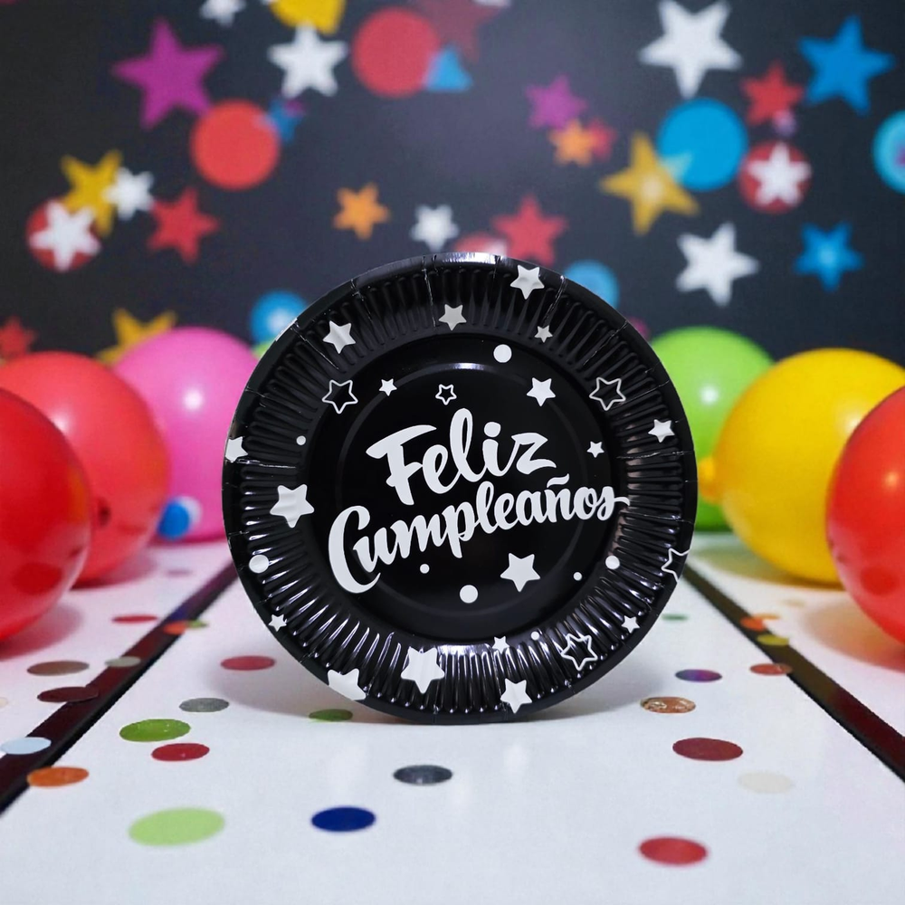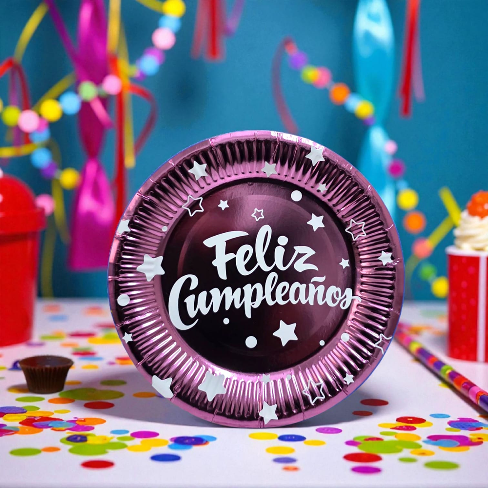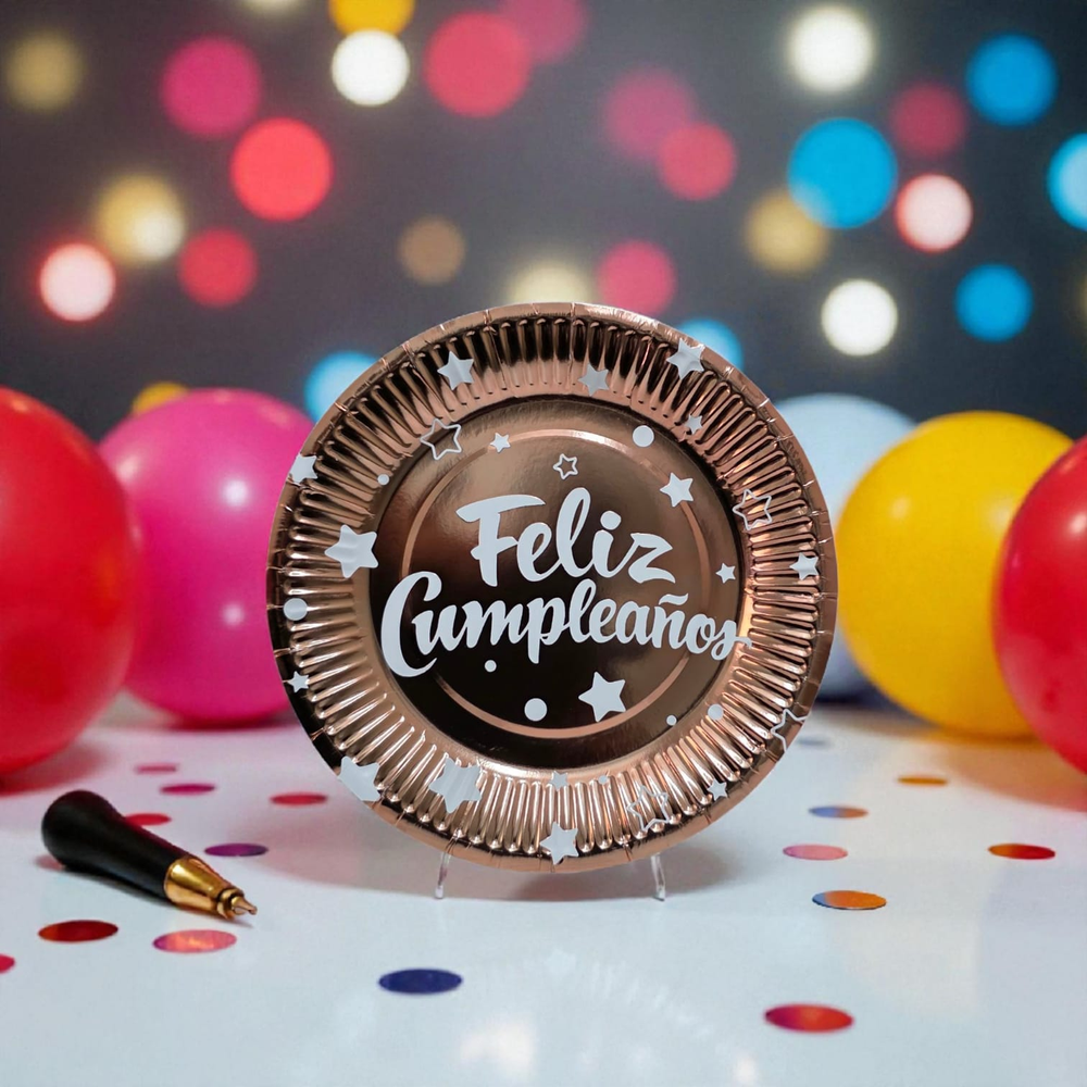 PLATOS DESCARTABLES FELIZ CUMPLEAÑOS METALIZADOS