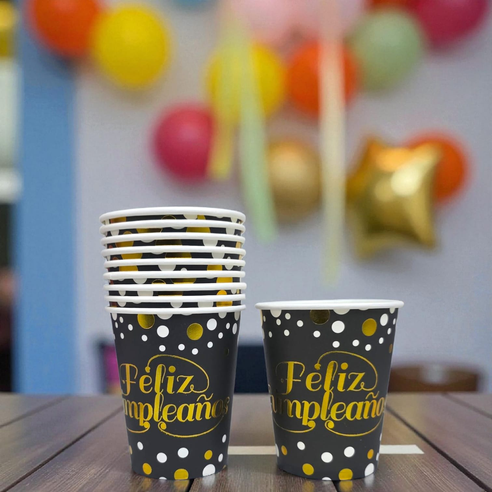VASOS DESCARTABLES LUNARES FELIZ CUMPLEAÑOS