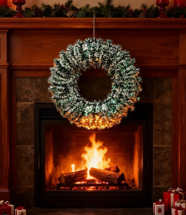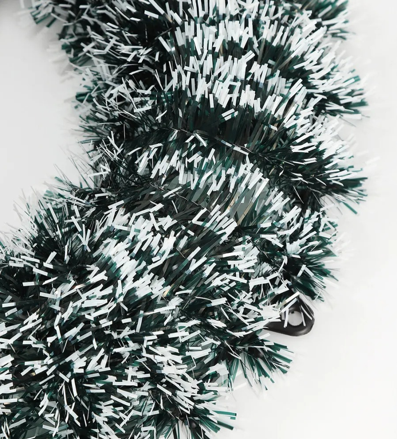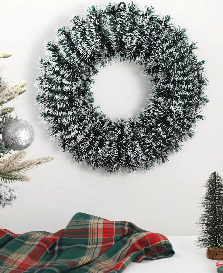 Corona navideña verde. Llena tu hogar de espíritu festivo con esta hermosa corona navideña. Diseñada con hojas verdes y detalles en blanco, aporta un estilo natural y elegante perfecto para decorar puertas, ventanas, paredes o mesas durante las fiestas.