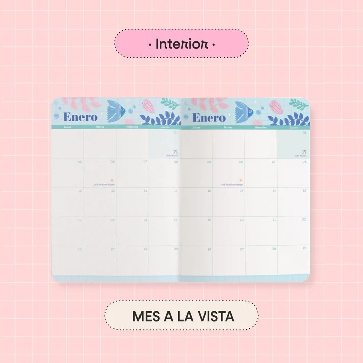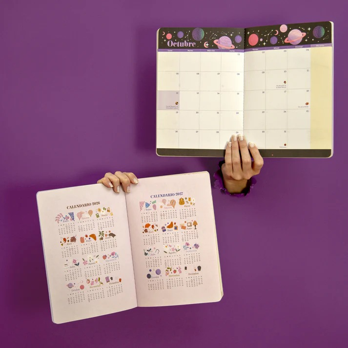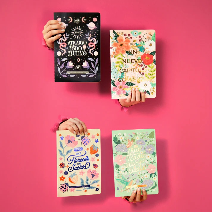 ¿TE GUSTARÍA SABER QUÉ CONTIENEN? • ¡48 páginas a todo color! • Carátula inicial para completar tus datos en cada modelo. • Calendarios ilustrados 2026 y 2027. • Listado anual de feriados. • Planificador mensual doble página. • Calendarios ilustrados 2026 y 2027. • Control de gastos mensuales. • Sección de mascotas. • Calendario Menstrual. • Planificador de Viajes y Escapadas con check list. • Estudios, Turnos. • Spolier altert para anotar series y libros recomendados • Mis listas de Deseos, Hábitos y Objetivos del año. • Notas para que escribas datos importantes y todo lo que quieras.