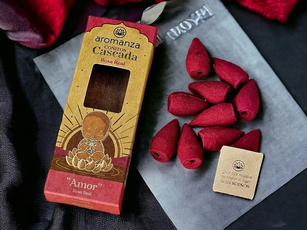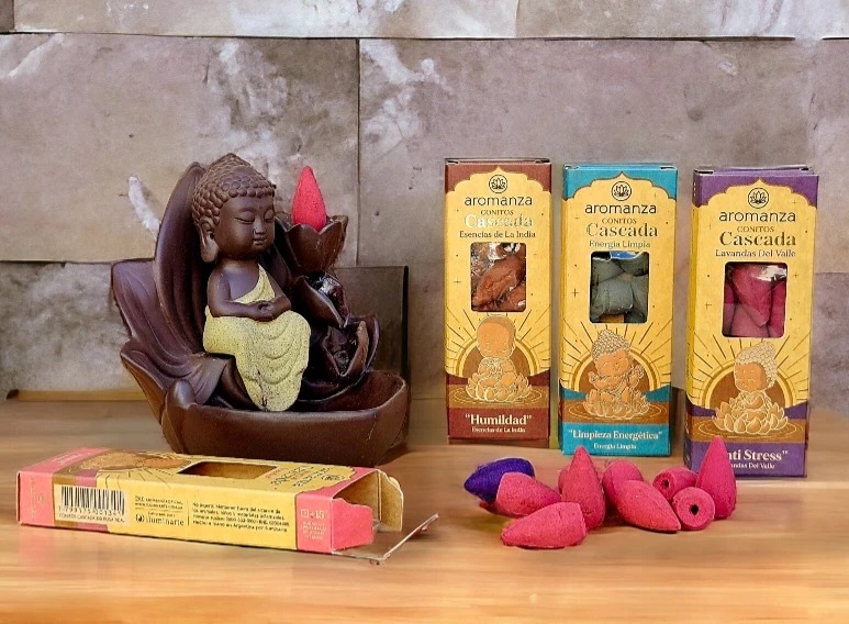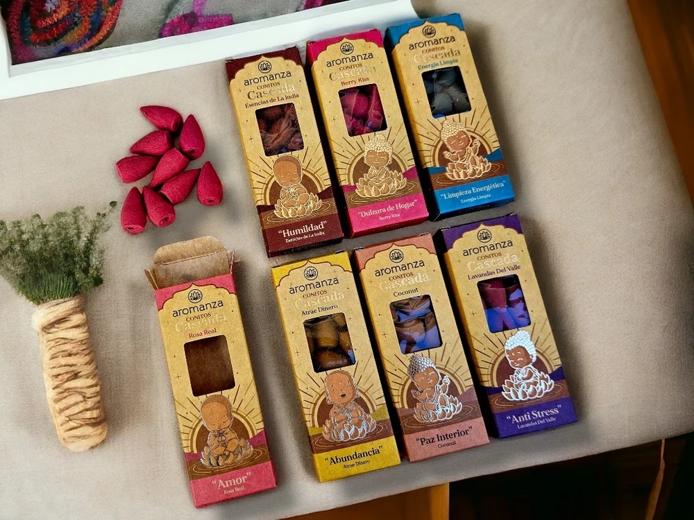 Los sahumerios Conos Cascada de Aromanza tienen un formato de cono y cada caja contiene 10 unidades.